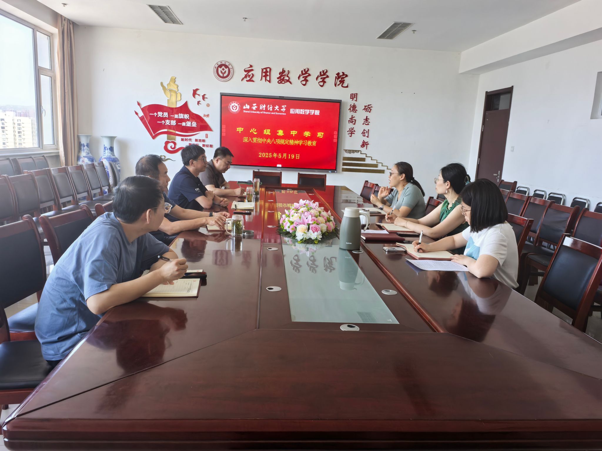2025年5月19日下午,太阳集团tyc138党委理论学习中心组在学院会议室开展深入贯彻中央八项规定精神学习教育,集中学习了《党的十八大以来深入贯彻中央八项规定精神的成效和经验》和《八项规定改变中国》。
