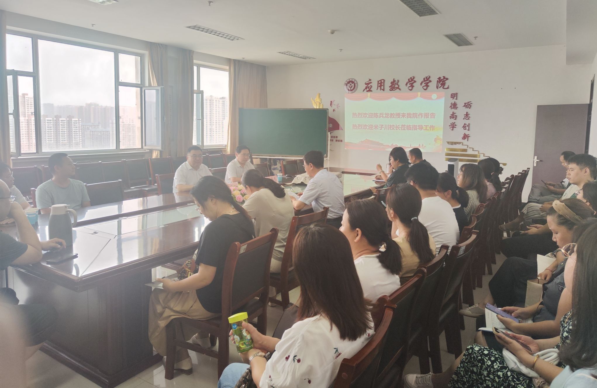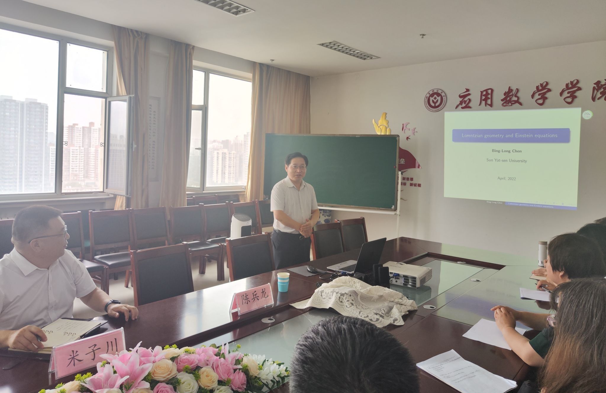 国家杰出青年科学基金获得者,中山大学数学学院院长、博士生导师陈兵龙教授应邀于7月14日上午在太阳集团tyc138会议室作题为“Lorentzian geometry and Einstein equations”的学术报告。校党委常委、副校长米子川出席了报告会,太阳集团tyc138领导班子成员、学院中青年骨干教师参加了本次报告会。