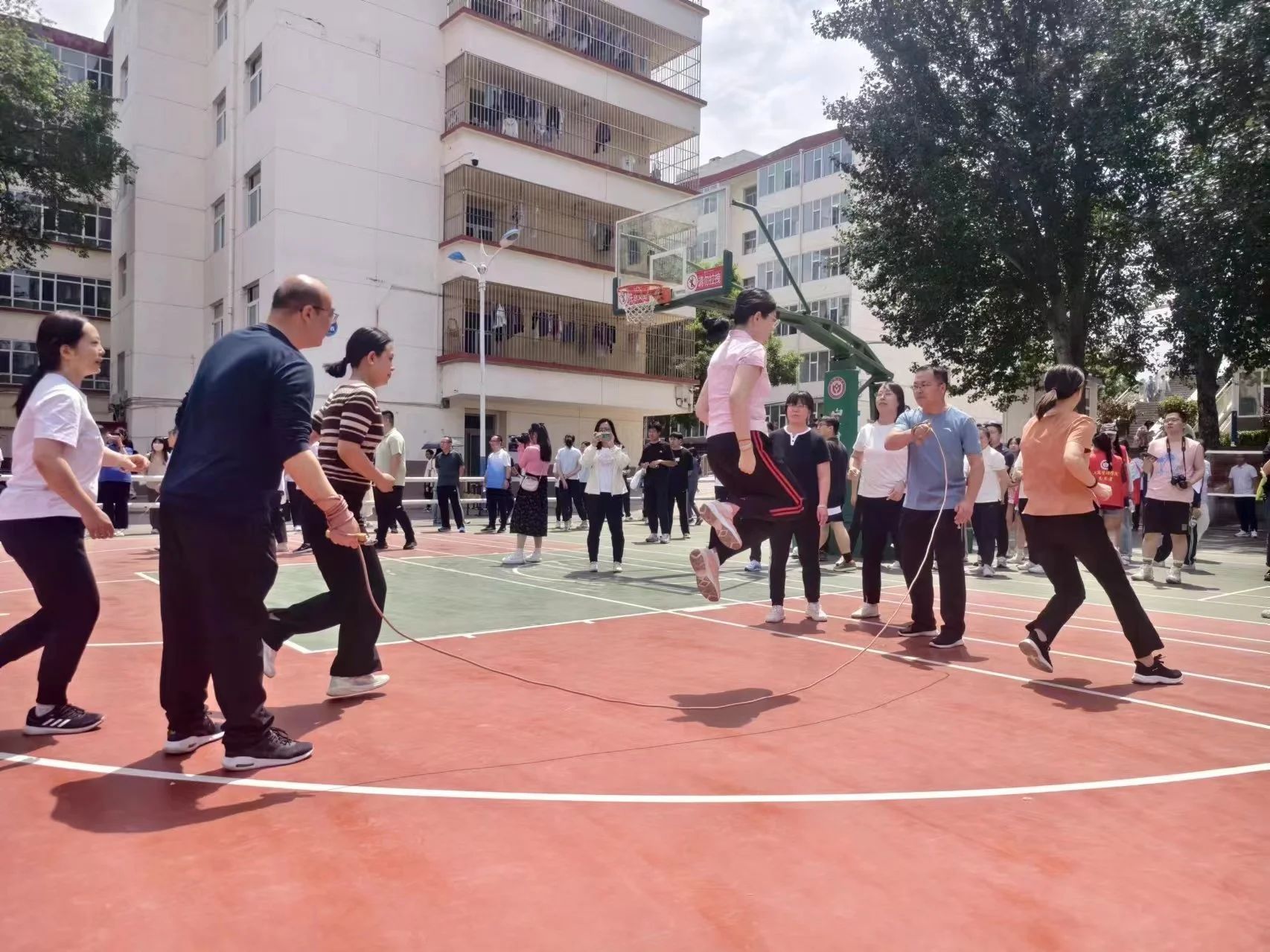80余人次教职工参加了各项集体和个人项目,充分展现了应数教职工奋发向上、永不放弃的精神,团结进取、勇于争先的风貌。昔日的讲台上,他们严谨庄重,兢兢业业,今日的运动场上,来自太阳集团tyc138的教师们,活力满满,在集体跳绳,滚铁环,抢收抢种,投篮等众多项目中展现运动的魅力。
