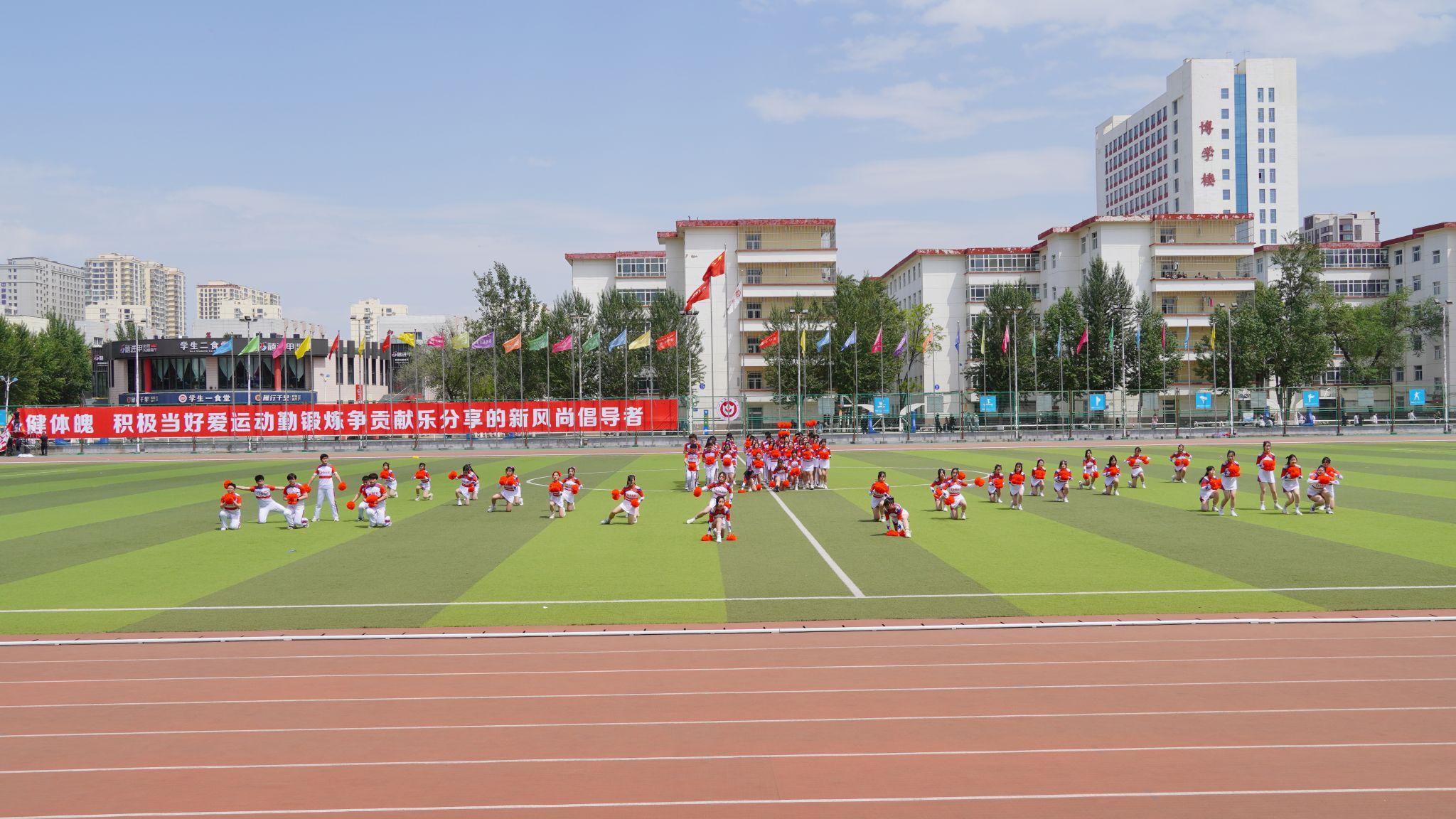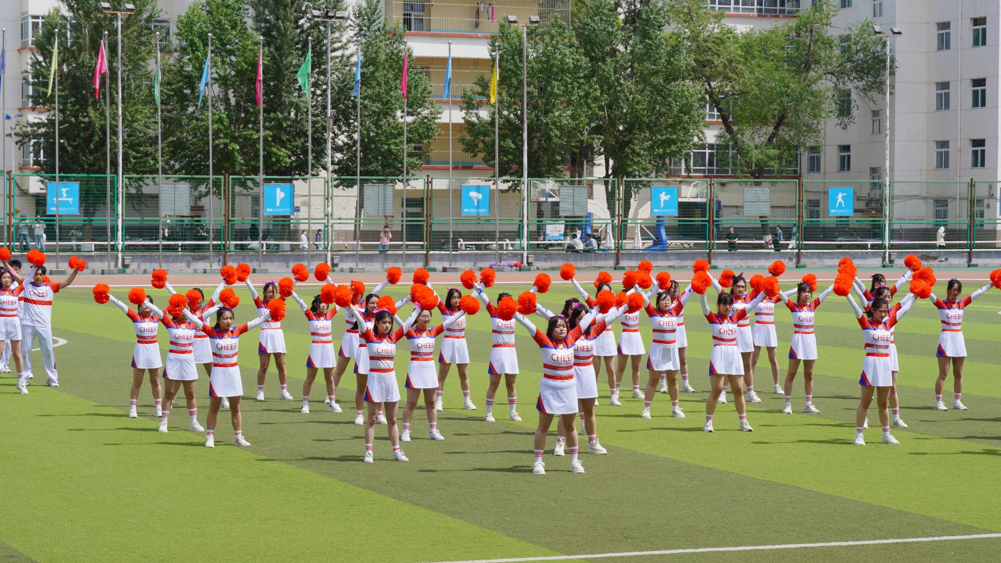 比赛现场,太阳集团tyc138的啦啦操队员们踏着动感的节拍,昂扬地走向操场中央。随着音乐的响起,花球在她们手中飞舞,仿佛是青春的火焰在燃烧。队员们用充满力量与热情的动作,诠释着青春的活力与激情。